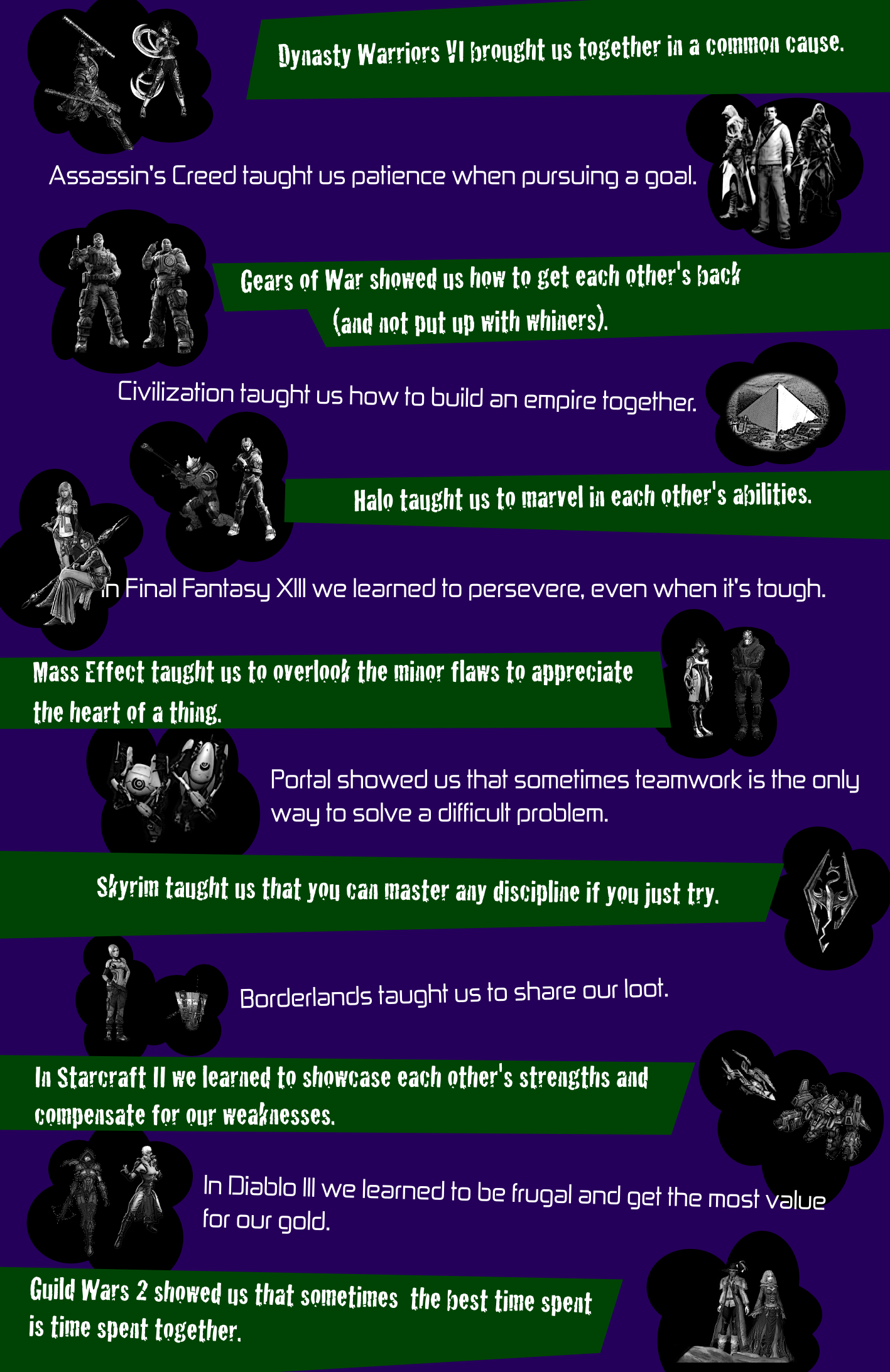 I promise to be your faithful co-op partner for life, in low level and high, whether noob or l33t, regardless of lag, downed servers, or loss of internet. I promise to celebrate your achievements as if they were my own and to openly share my loot with you. I swear to stand by you when your K/D spread is negative and to always help you achieve 100% map completion. I will not grow angry when your character is higher level than mine, because I know in time we will reach the level cap together. I will wait with you for the midnight release of the next summer blockbuster, no matter how long the line, and I promise to always pre-order a second copy of PC games so we can play the online co-op. I swear to never forsake you from my party, nor to quit in rage. From this day forward, my game library is yours, and together we’ll share one hard drive, on this game system, and on every system to come.